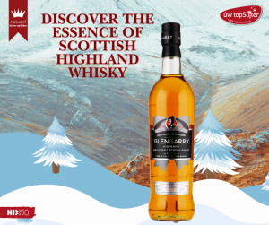 De Glengarry Higland Single Malt komt uit Schotland en heeft een alcoholpercentage van 40%. Hij kleurt mooi amber en wanneer je de fles opent ruik je mout, gerst en boomgaardfruit. De smaak is goed in balans en kort daarna slaat deze dan door naar zoetig graan, peer en vanille gecombineerd met zachte citrustonen.